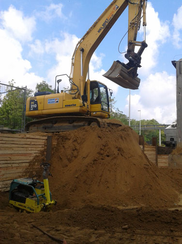 Die Modellierung und Formgebung der Geländeoberflächen gehört ebenso zu unserem Betätigungsfeld, wie das Ausheben und Verfüllen von Baugruben, Gräben und Fundamenten.
